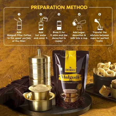 Continental Malgudi - Pouch | 80% Coffee 20% Chicory | Roast & Ground Coffee Powder | Filter Coffee Powder